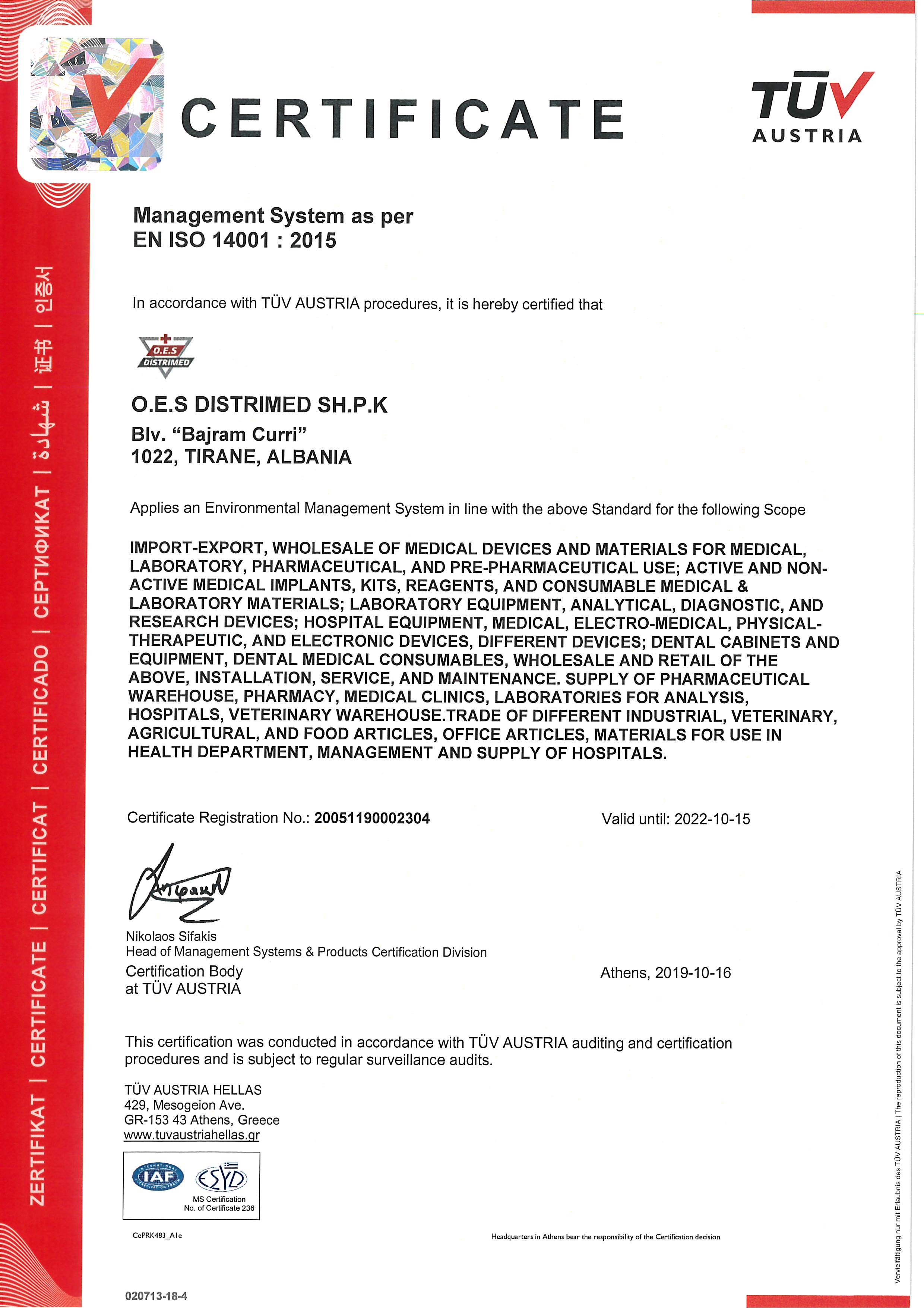 CERT TUV AUSTRIA ISO 14001 : 2015