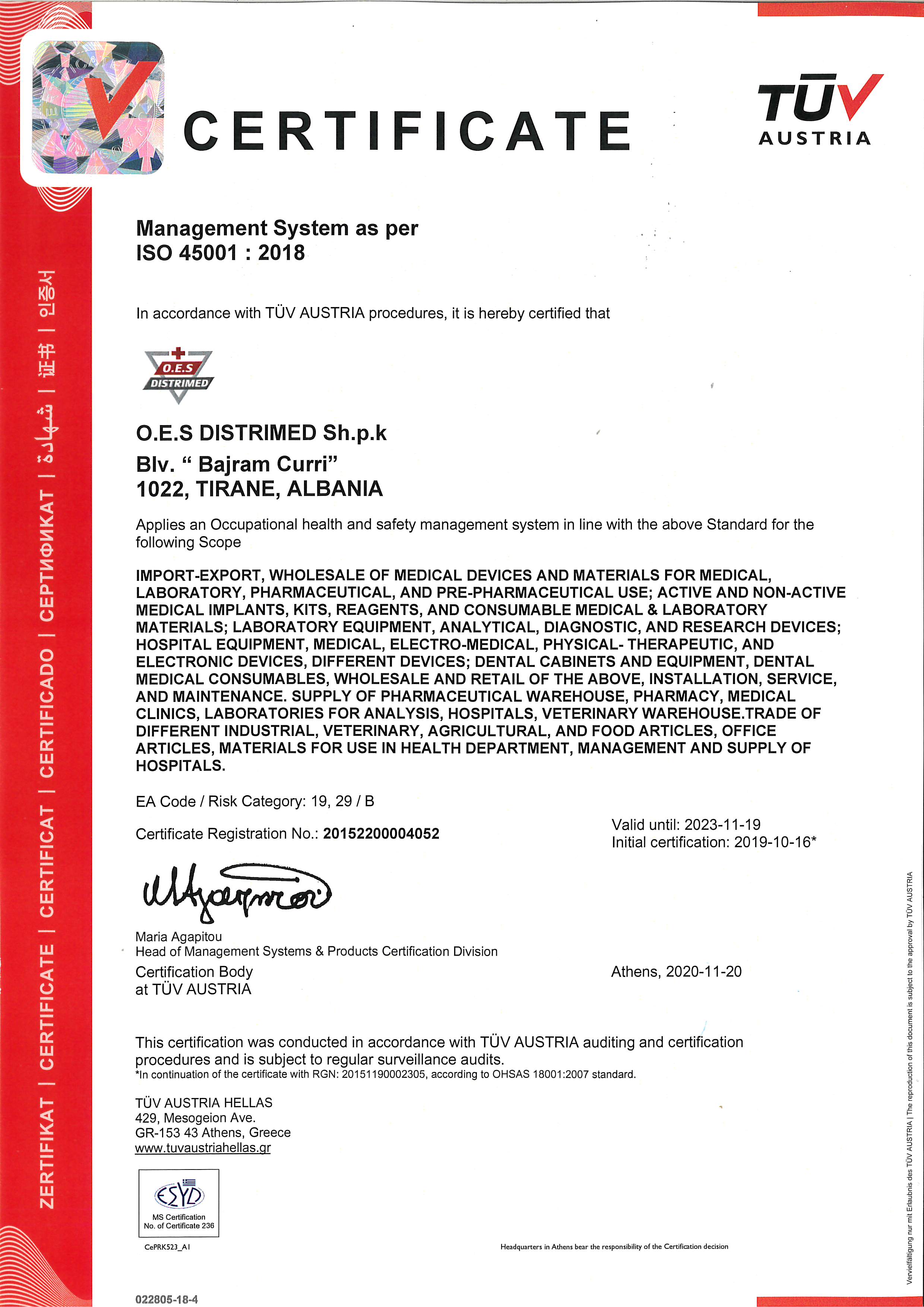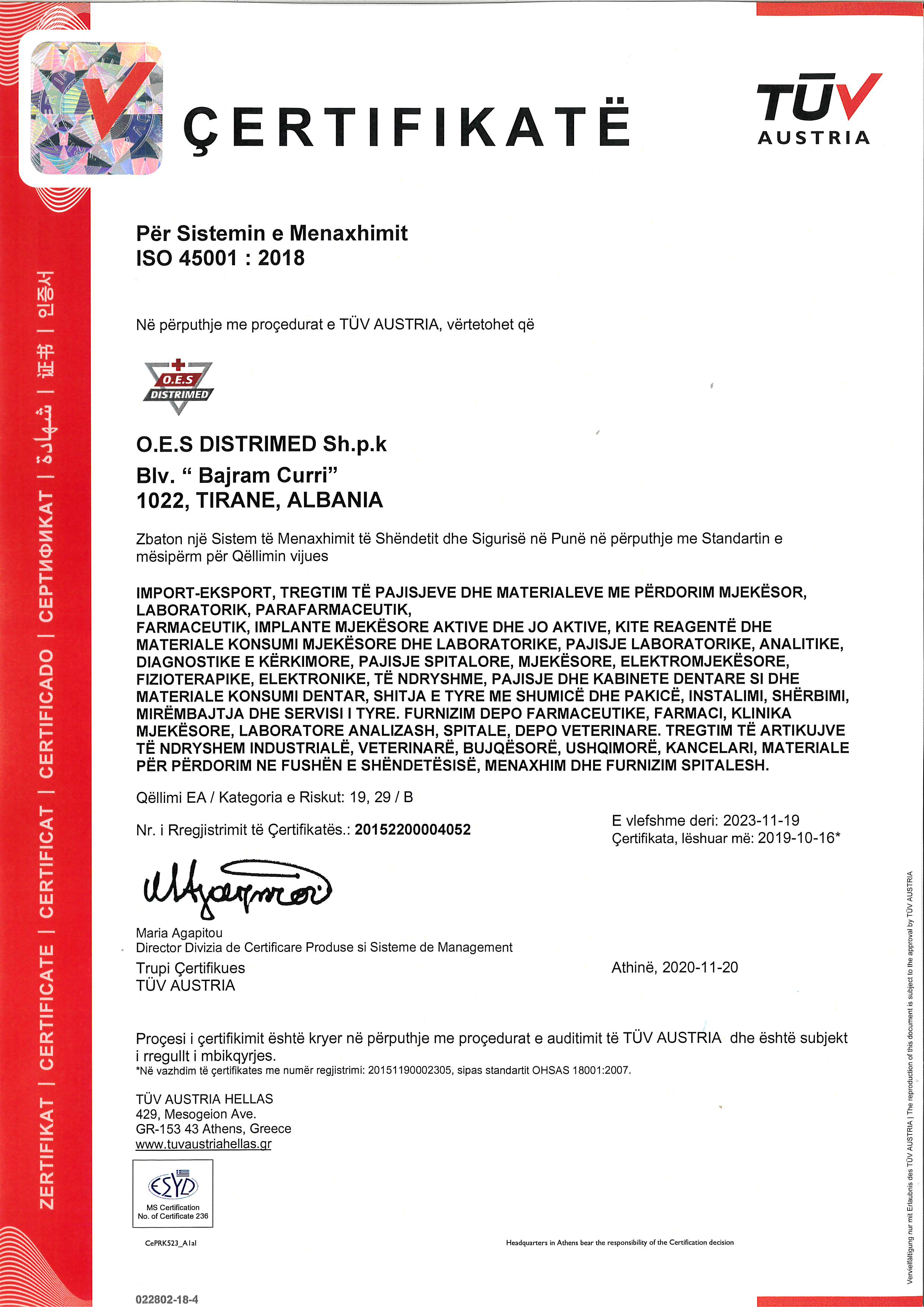 CERT TUV AUSTRIA ISO 45001: 2015.